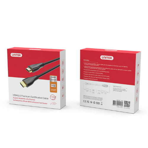 כבל מסך HDMI יוניטק 1.5 מטר Unitek C1047GB 4K 60Hz Premium Certified HDMI Cable With Ethernet 1.5M
