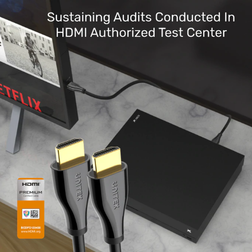 כבל HDMI מהיר זה מאומת תחת תוכנית הסמכת כבלי HDMI Premium אשר כוללת בדיקות כבלים קפדניות כמו גם תוכנית אימות ואימות. בהתאם להנחיית העיצוב של HDMI, כבל זה נוצר כדי להבטיח שאות 4K 60Hz וכל שאר התכונות מועברות בצורה חלקה דרך רוחב הפס של 18Gbps.