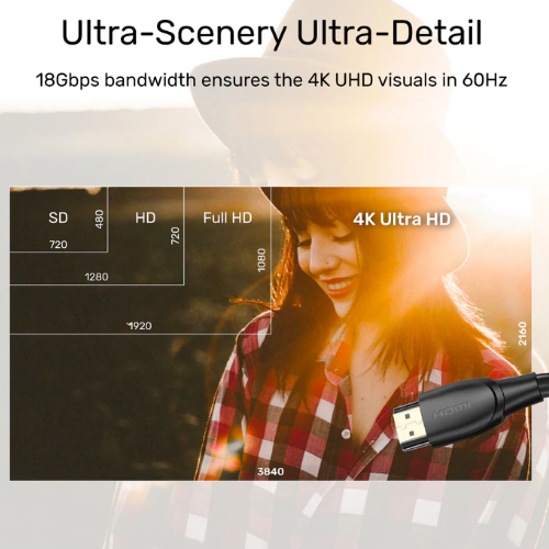 4K@60Hz Ultra HD למרחקים ארוכים, כמפורט ב-HDMI 2.0.