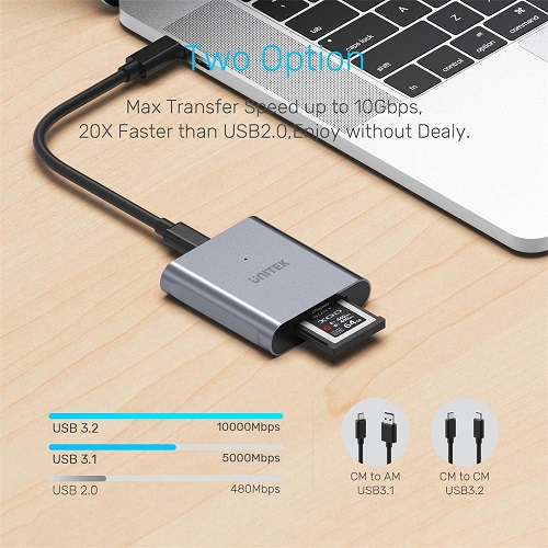 קורא כרטיסים מיקרו אס די חיבור יו אס בי / יו אס בי סי יוניטק Unitek R1005A CFexpress2.0 USB3.0 And Type-C Cable also support thunderbolt 10Gbps Aluminium Card Reader