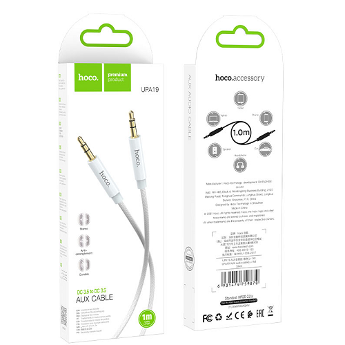 כבל אודיו באורך 1 מטר כסוף 3.5 מ''מ הוקו Hoco UPA19S Cable 3.5mm to 3.5mm audio AUX