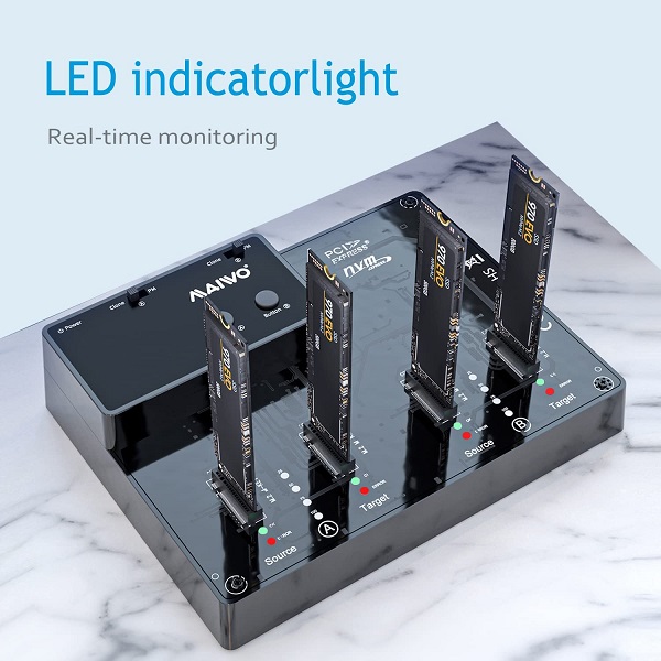 תמיכה ב-4 יחידות מפתח M NVMe M.2 SSD 2230,2242,2260,2280,22110, יכול לזהות ארבעה דיסקים באותו זמן בעת חיבור למחשב