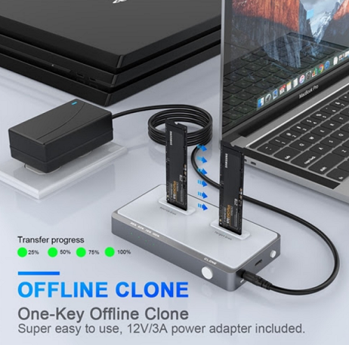 תושבת כפולה משכפל לדיסקים קשיחים 2x.2 M.2 NVMe ומשכפלת Rocketek ME922 M.2 SATA/NVMe Docking Station Duplicator