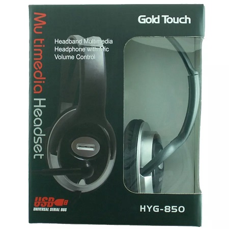 אוזניות למחשב ומיקרופון בקרת ווליום גולד טאצ שחור Gold Touch HYG-850 Headset With Microphone USB Connector Type