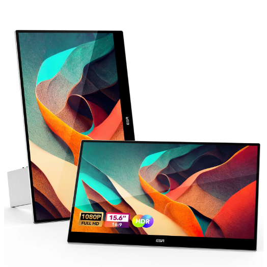 מסך נייד לנשיאה לחיבור מסך נוסף מומלץ למחשב נייד ESR 6F0020101 Kickstand Portable Monitor 15.6Inch Full HD HDMI and/or USB Type-C DisplayPort