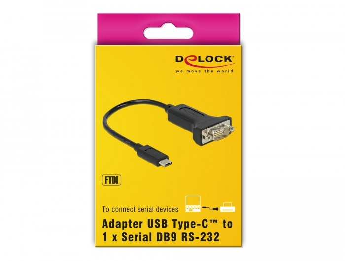 מתאם USB Type-C™ לטורי של Delock מספק ממשק RS-232 DB9 תואם למדפסות, מכשירי מדידה, בקרים, התקני IoT וכו'.