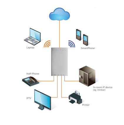 מצויד בארבע יציאות Ethernet לגישה לחדר, ניתן להשתמש ב-ZoneFlex H510 לחיבור מגוון של התקני רשת קווית כגון ממיר IPtv, טלפונים IP, או מיני-ברים מחוברים לרשת תוך מתן כיסוי LAN אלחוטי 802.11ac כפול. יציאת Power-over-Ethernet (PoE) תואמת IEEE 802.3af ב-H510 מאפשרת להפעיל התקנים כגון טלפונים IP ישירות מהמתג בקיר. ה-H510 עצמו עשוי להיות מופעל באמצעות PoE רגיל או מתאם מתח DC. ניתן לפרוס את ה-H510 כהתקן עצמאי או בניהול מרכזי על ידי פלטפורמות ניהול SmartZone, ZoneDirector או FlexMaster.