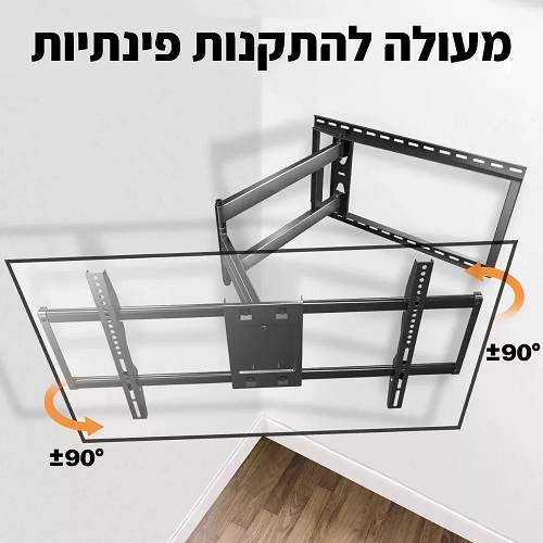למתקן צידוד אופקי בטווח של 90° בכל מפרק ואפשרות הטייה בתושבת המסך – מאפשר להתקין את המסך בפינות