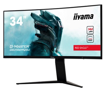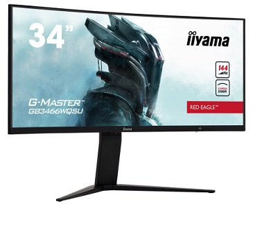 מסך מחשב קעור לגיימרים 34 אינץ' שחור IIYAMA GB3466WQSU-B1 G-Master 34Inch Curved 3440x1440 UWQHD VA 144Hz 1ms Speaker HDMI DP USB Headphone AMD Freesync Premium Black