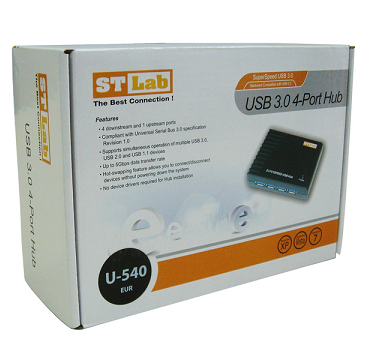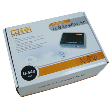 רכזת יו.אס.בי 4 כניסות מהירות ספק-כוח אופציונלי ST-Lab U-540 USB 3.0 4-Port Hub Adapter Compliant with Universal Serial Bus 3.0 Specifications