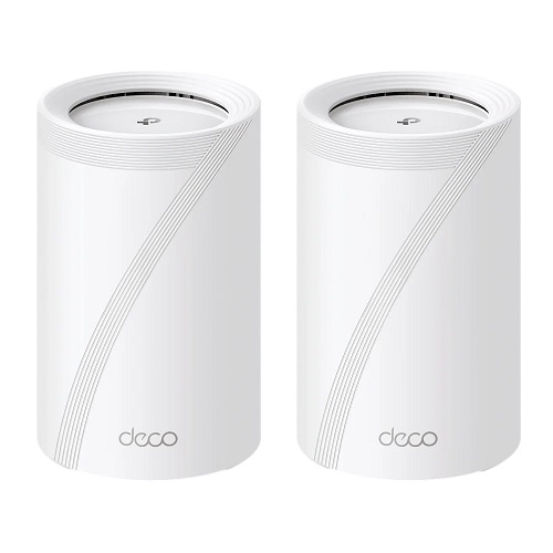 נתב ונקודת גישה אלחוטית טיפי-לינק TP-Link Deco BE65 2-Pack BE9300 Whole Home Mesh System 6GHz 5765Mbps 802.11be WiFi7 802.11/be/ax 6GHz 4x RJ45 2.5GbE Router Access Point