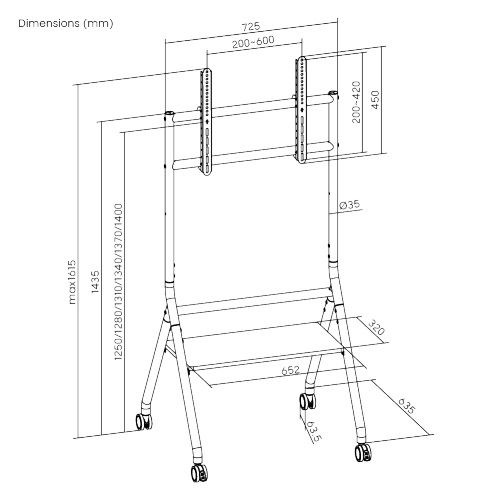 מידות: 725x635x1615 מ"מ (28.5"x25"x63.6")