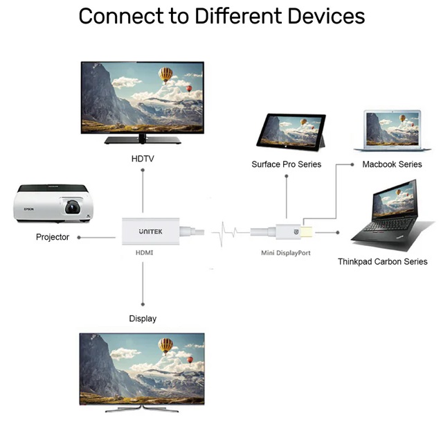 מתאם UNITEK 4K 30Hz Mini DisplayPort ל-HDMI מאפשר המרה חלקה מ-Mini DisplayPort ל-HDMI,