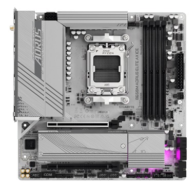לוח-אם לגיימרים למעבדי AMD רייזן AM5 ג'יגהבייט Gigabyte B650M A ELITE AX ICE 1.1 AM5 DDR5 mATX HDMI DP WiFi 6E Bluetooth 2.5GbE