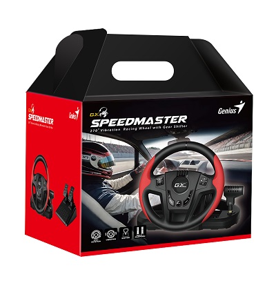 הגה מירוצים עם משוב רטט דוושות וידית הילוכים מבית ג'ניוס Genius SpeedMaster 270° Vibration Racing Wheel with Shifter PlayStation 3 and 4