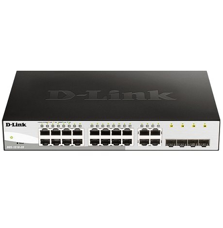 מתג מנוהל רכזת רשת 16 ערוצים ג'יגה דילינק D-Link DGS-1210-20/B1A 16Port Gigabit Web Smart Switch Managed Switch with 16x 10/100/1000Base-T and 4 x Gigabit RJ45/SFP Combo ports